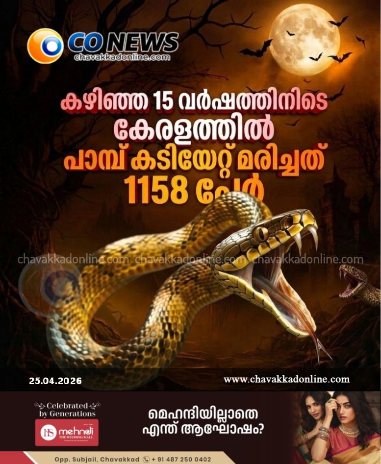 കഴിഞ്ഞ 15 വർഷത്തിനിടെ കേരളത്തിൽ പാമ്പ് കടിയേറ്റ് മരിച്ചത് 1158 പേർ