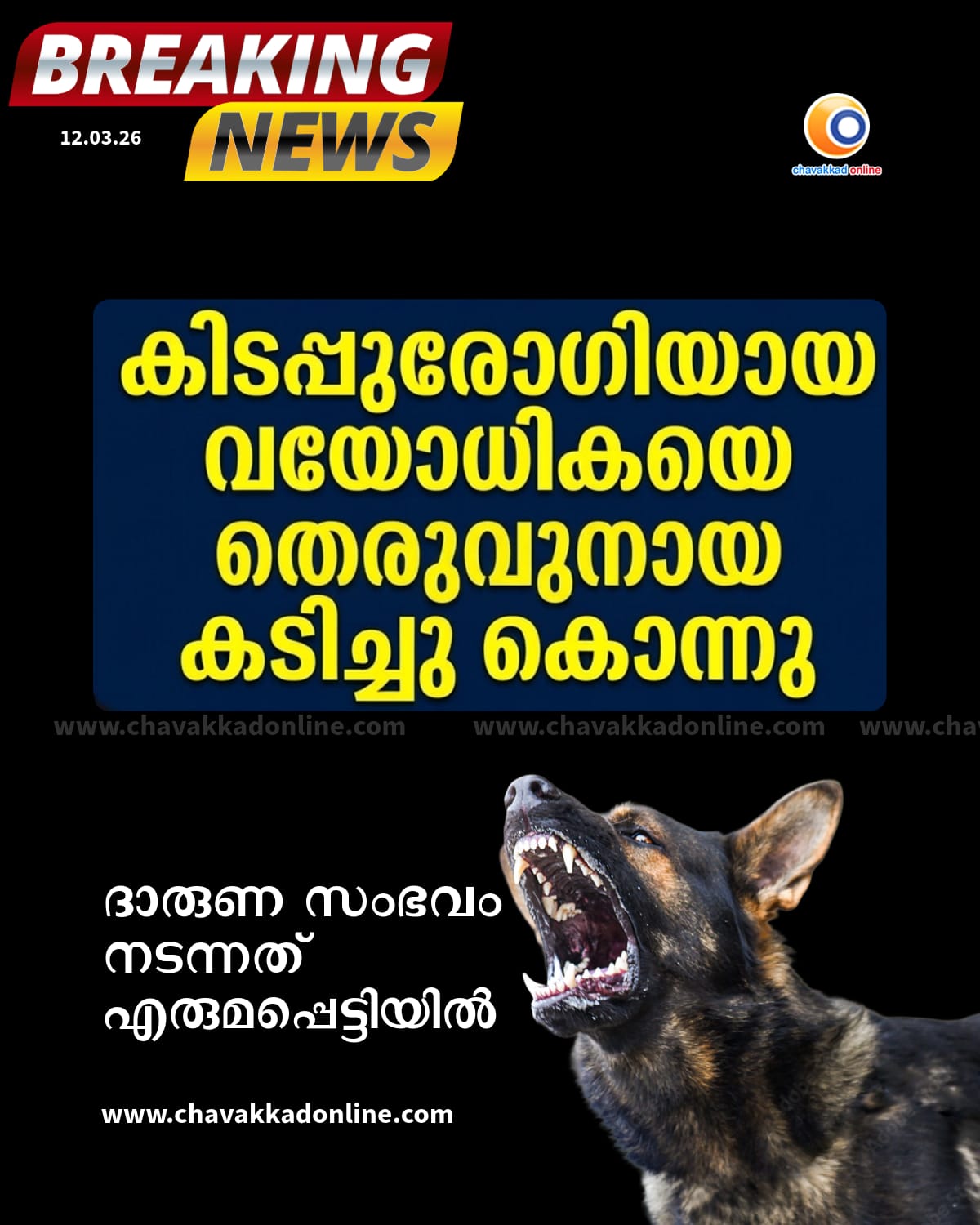 കിടപ്പുരോഗിയായ വയോധികയെ തെരുവുനായ കടിച്ചു കൊന്നു