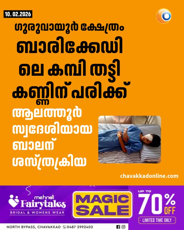 ഗുരുവായൂർ ക്ഷേത്രത്തിലെ ബാരിക്കേഡിലെ കമ്പി തട്ടി കണ്ണിന് പരിക്ക്: ആലത്തൂർ സ്വദേശിയായ ബാലന് ശസ്ത്രക്രിയ