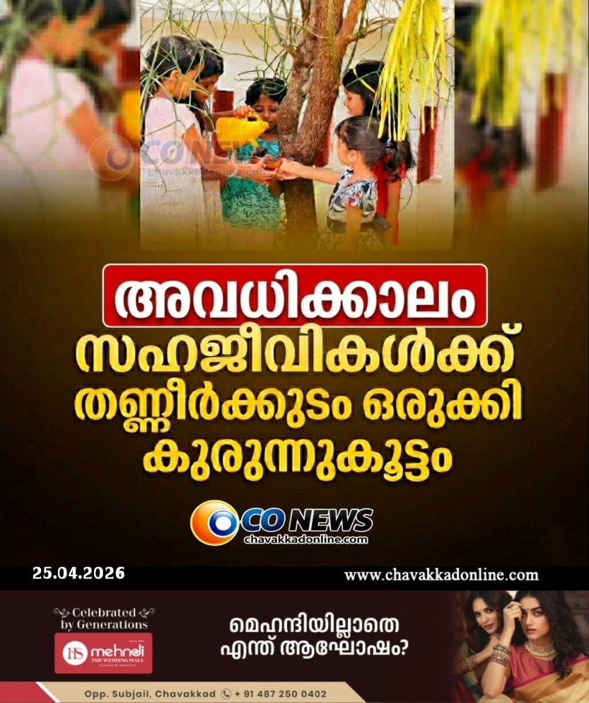 ചാവക്കാട്: കനത്ത ചൂടിൽ വേനലവധിക്കാലം വീട്ടിൽ ഒതുങ്ങിയപ്പോൾ സഹജീവികൾക്ക് കരുതലായി തണ്ണീർ കുടം ഒരുക്കി മാതൃകയായി കുരുന്നു കൂട്ടം. മന്ദലാംകുന്ന് പുത്തൻപുരയിൽ സാലിഹിന്റെ മകൾ രണ്ടാം ക്ലാസുകാരിയായ ഹവ്വയും കൂട്ടുകാരികളായ ആയിഷ, റിതു, നൂറ, ഐസ്സ എന്നിവർ ചേർന്ന് സഹജീവികൾക്ക് തണ്ണീർ കുടം ഒരുക്കിയത്. കളികൾക്കിടയിൽ ദാഹി ച്ച് വലഞ്ഞപ്പോഴാണ് സഹജീവികൾ കൾക്ക് ദാഹിച്ചാൽ എന്തു ചെയ്യും എന്ന ചോദ്യം ഇവരുടെ മനസ്സിലുദിച്ചത്. സഹജീവികൾക്ക് വെള്ളം കൊടുക്കാൻ ഉമ്മയോട് പാത്രം തിരക്കിയപ്പോൾ വീട്ടിലെ തൂക്കിയിട്ട ചെടിച്ചട്ടിയിൽ നിന്ന് ചെടി ഒഴിവാക്കി ഉമ്മയും ഒപ്പം കൂടിയത് കുരുന്നു കൂട്ടത്തിന് പ്രോത്സാഹനമായി. വീട്ടിലെ മരച്ചില്ലകളിലാണ് തണ്ണീർ കുടങ്ങൾ സ്ഥാപിച്ചിരിക്കുന്നത്. ദിവസവും ഉമ്മയോടൊപ്പം ചെടി നനക്കുന്നതിനിടയിലാണ് ഹവ്വയും കൂട്ടുകാരികളും തണ്ണീർ കുടത്തിൽ വെള്ളം നിറക്കുന്നത്. കൂട്ടുകാരികളും അവരുടെ വീടുകളിലും തണ്ണീർകുടം ഒരുക്കാനുള്ള തയ്യാറെടുപ്പിലാണ്..