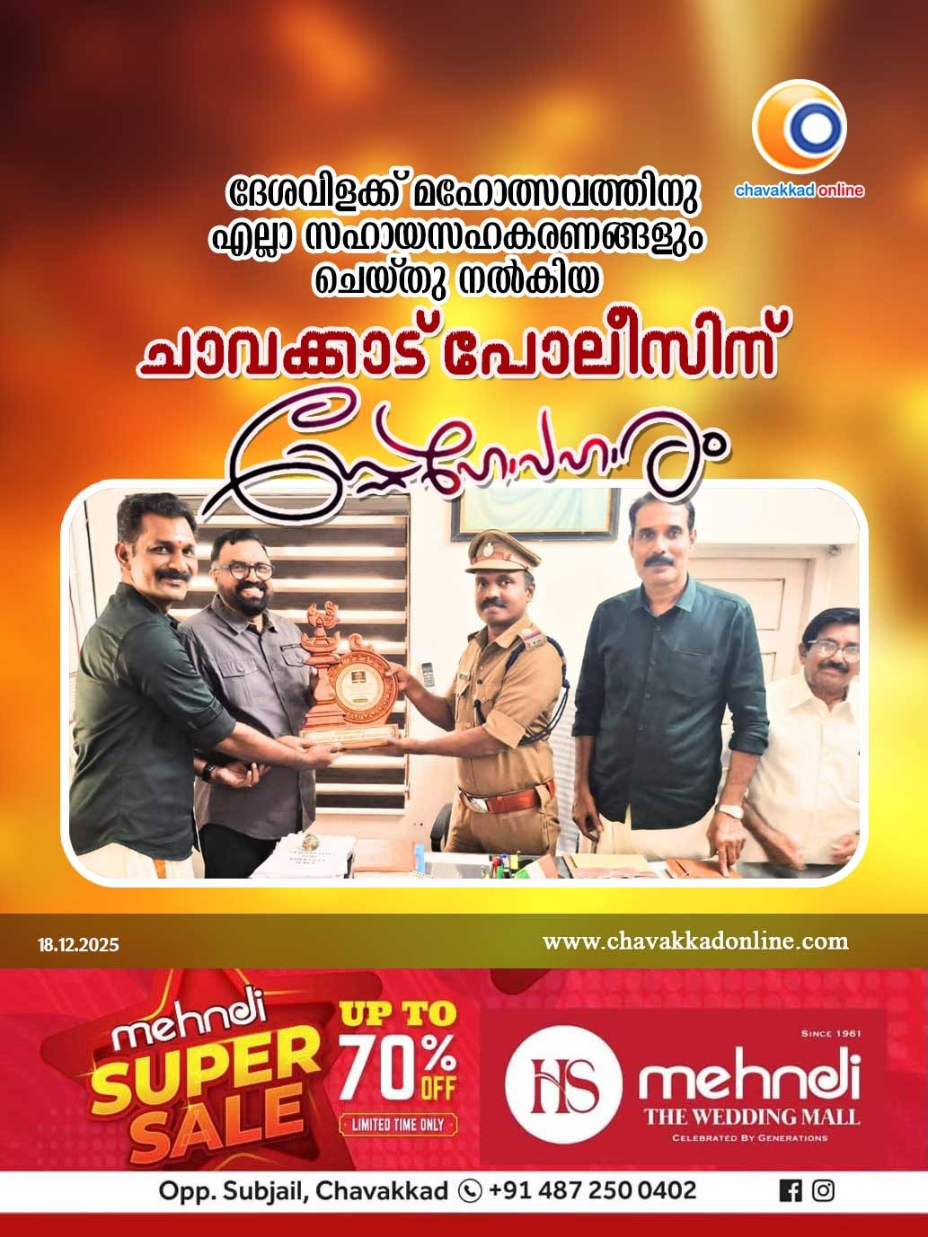 ദേശവിളക്ക് മഹോത്സവത്തിന് എല്ലാ സഹായ സഹകരണങ്ങളും ചെയ്തു നൽകിയ ചാവക്കാട് പോലീസിന് സ്നേഹോപഹാരം