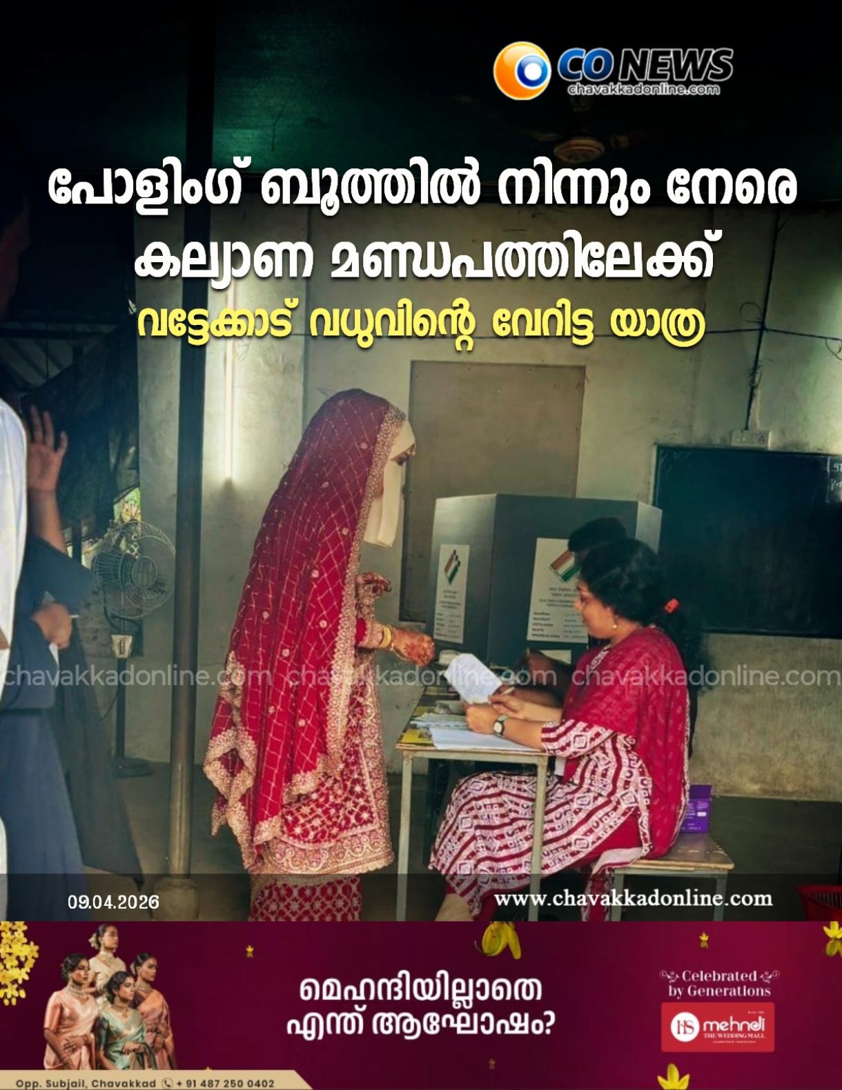 പോളിംഗ് ബൂത്തിൽ നിന്നും നേരെ കല്യാണ മണ്ഡപത്തിലേക്ക്; വട്ടേക്കാട് വധുവിന്റെ വേറിട്ട യാത്ര*