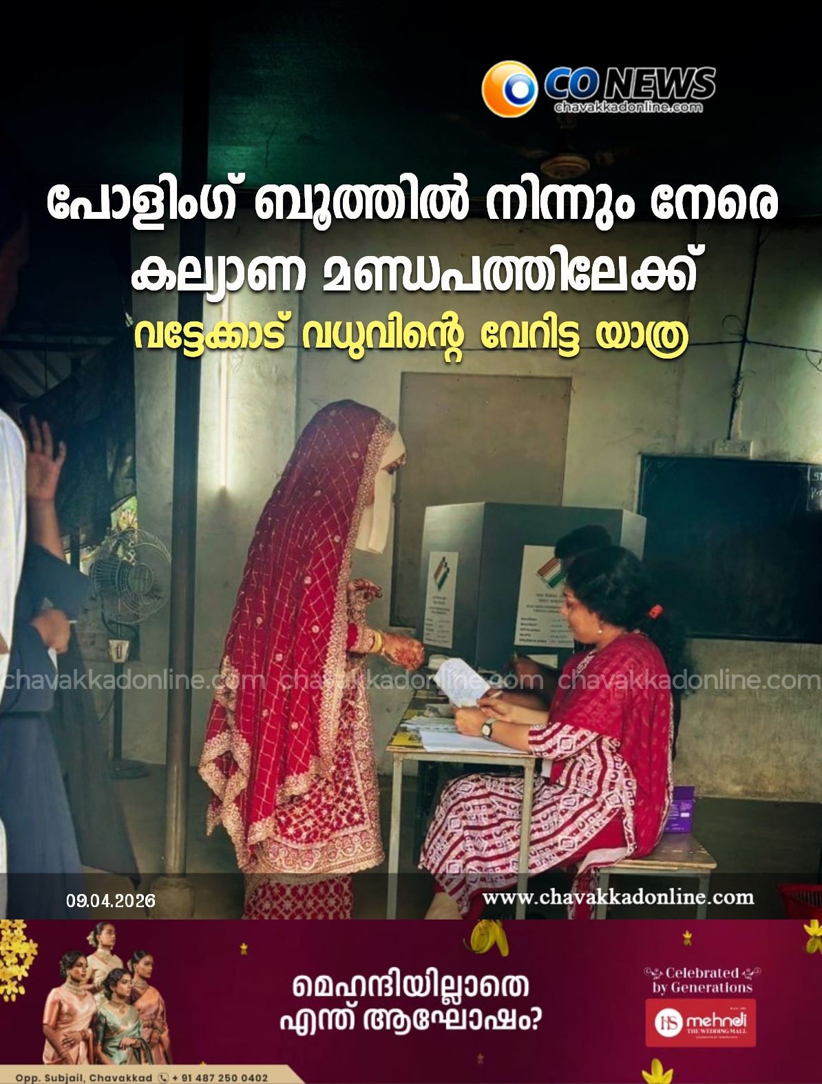 പോളിംഗ് ബൂത്തിൽ നിന്നും നേരെ കല്യാണ മണ്ഡപത്തിലേക്ക് വട്ടേക്കാട് വധുവിന്റെ വേറിട്ട യാത്ര