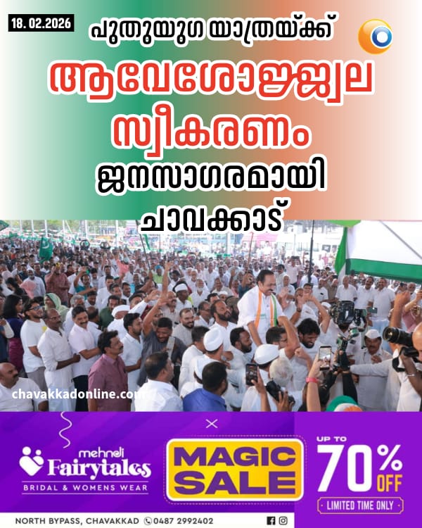പുതുയുഗ യാത്രയ്ക്ക് ആവേശോജ്ജ്വല സ്വീകരണം; ജനസാഗരമായി ചാവക്കാട്