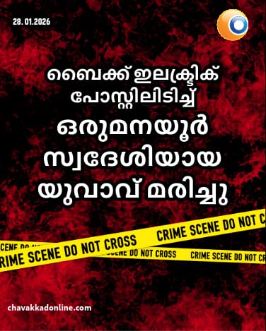 ബൈക്ക് ഇലക്ട്രിക് പോസ്റ്റിലിടിച്ച് ഒരുമനയൂർ സ്വദേശിയായ യുവാവ് മരിച്ചു