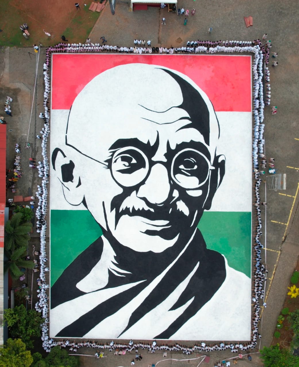 മഹാത്മാഗാന്ധിയുടെ ചിത്രം വരച്ച് അമൽ ഇംഗ്ലീഷ് സ്കൂളിന് ലോക റെക്കോർഡ്