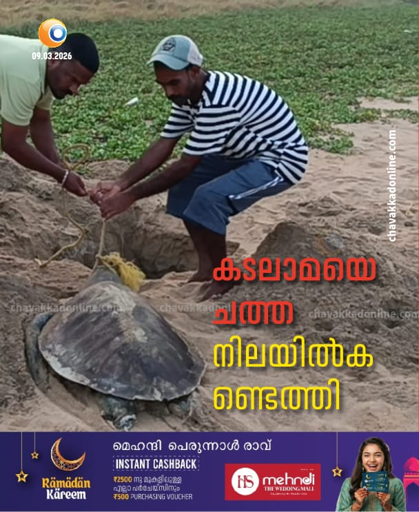 ചാവക്കാട് തീരത്ത് വീണ്ടും കടലാമ ചത്തടിഞ്ഞു; മൂന്ന് മാസത്തിനിടെ നാലാമത്തെ സംഭവം