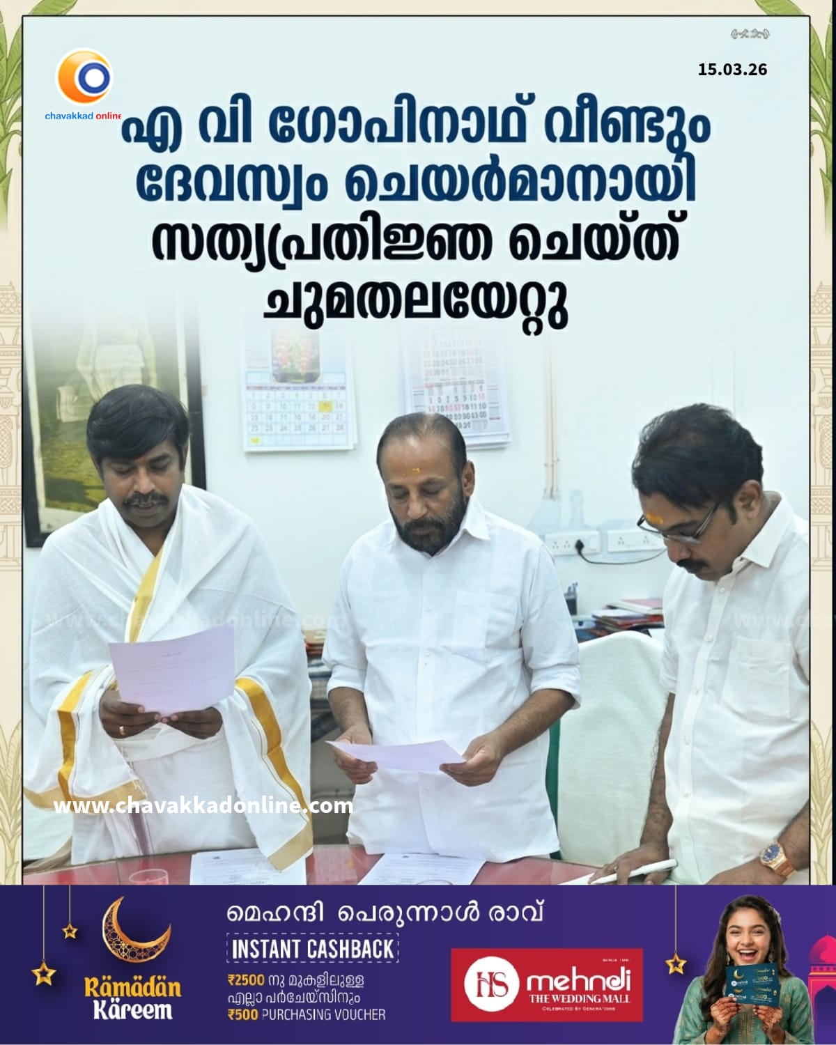 ഗുരുവായൂർ ദേവസ്വം ചെയർമാനായി എ വി ഗോപിനാഥ് വീണ്ടും സത്യപ്രതിജ്ഞ ചെയ്തു