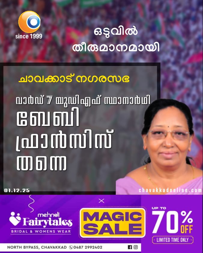 വാർഡ് 7 ൽ യുഡിഎഫ് സ്ഥാനാർത്ഥി ബേബി ഫ്രാൻസിസ് തന്നെ