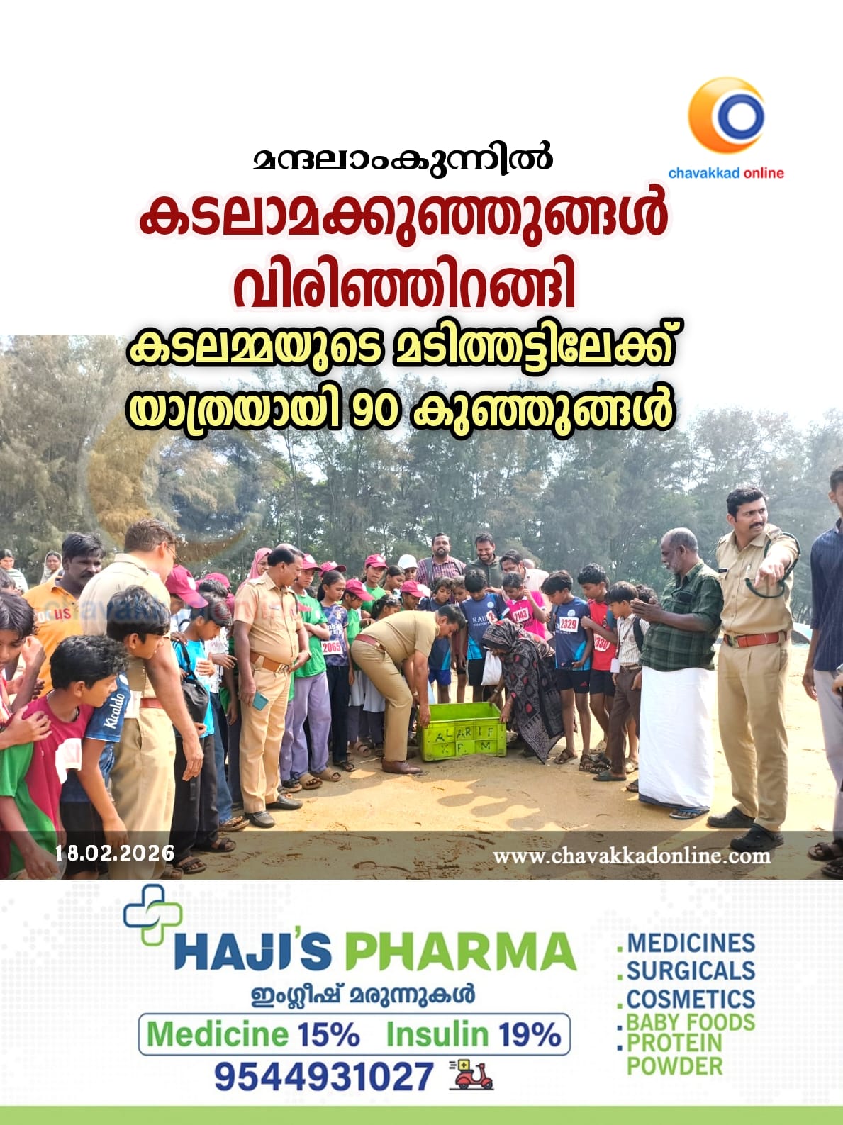 എരുമപ്പെട്ടി ഫോറസ്റ്റ് സ്റ്റേഷൻ ഡെപ്യൂട്ടി റേഞ്ച് ഓഫിസർ ഗീവർ വി.ജെ. ചടങ്ങ് ഉദ്ഘാടനം ചെയ്തു. പുന്നയൂർ പഞ്ചായത്ത് ഒന്നാം വാർഡ് മെമ്പർ ടി.എ. ആയിഷ, മന്ദലാംകുന്ന് ഗവ. ഫിഷറീസ് സ്കൂൾ പ്രിൻസിപ്പൽ സുനിത മേപ്പുറത്ത്, കടലാമ സംരക്ഷണ സമിതി പ്രസിഡന്റ് ഹംസു പാലക്കൽ എന്നിവർ സന്നിഹിതരായിരുന്നു.