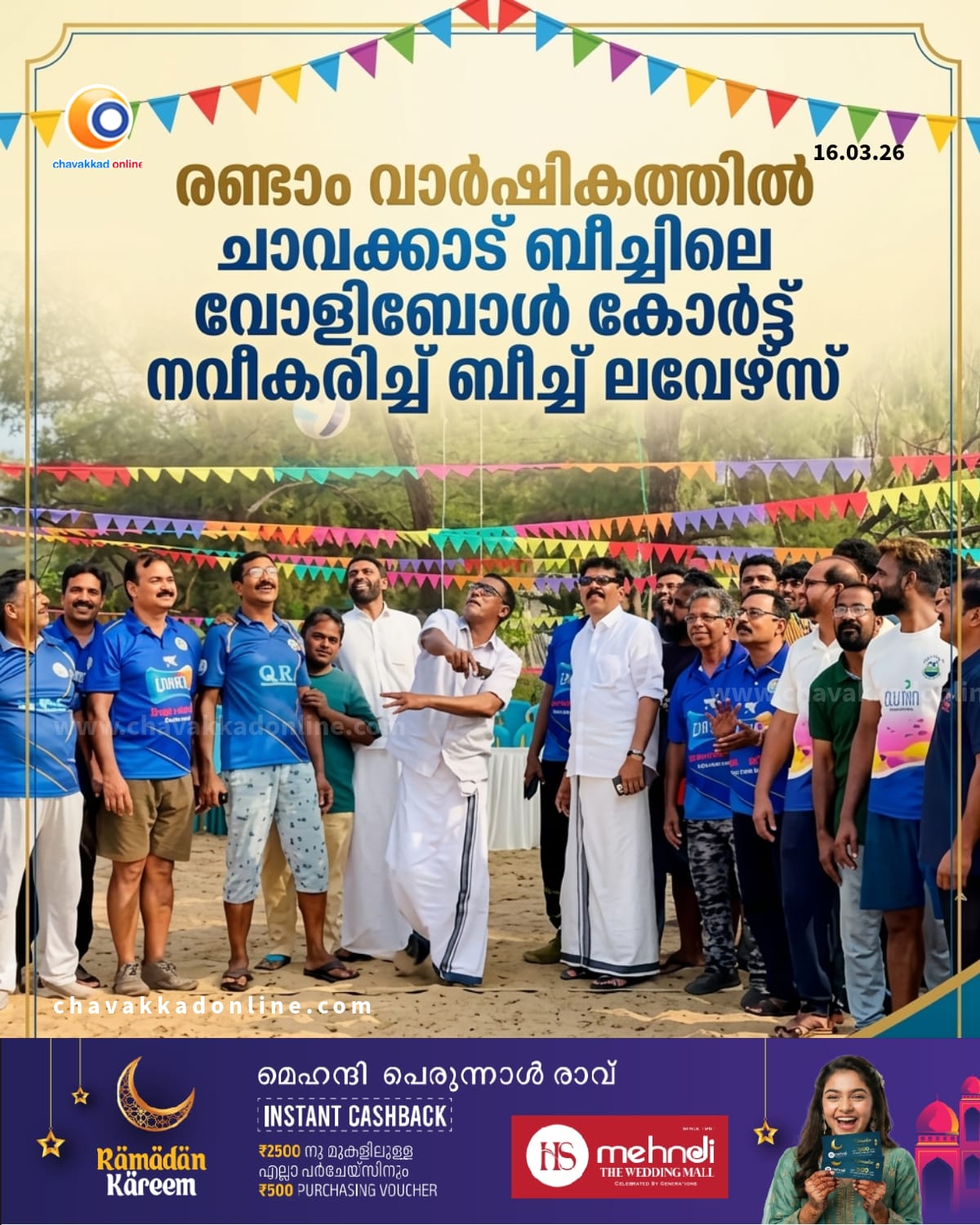 രണ്ടാം വാർഷികത്തിൽ ചാവക്കാട് ബീച്ചിലെ വോളിബോൾ കോർട്ട് നവീകരിച്ച് ബീച്ച് ലവേഴ്സ്