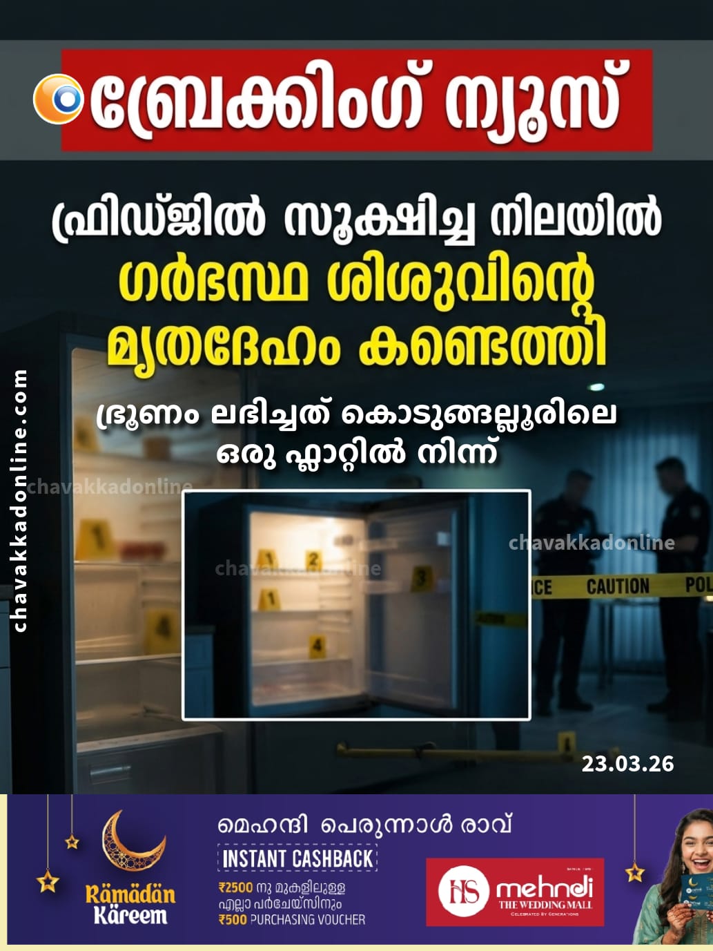 ഫ്രിഡ്ജിൽ സൂക്ഷിച്ച നിലയിൽ ഗർഭസ്ഥ ശിശുവിൻ്റെ മൃതദേഹം കണ്ടെത്തി