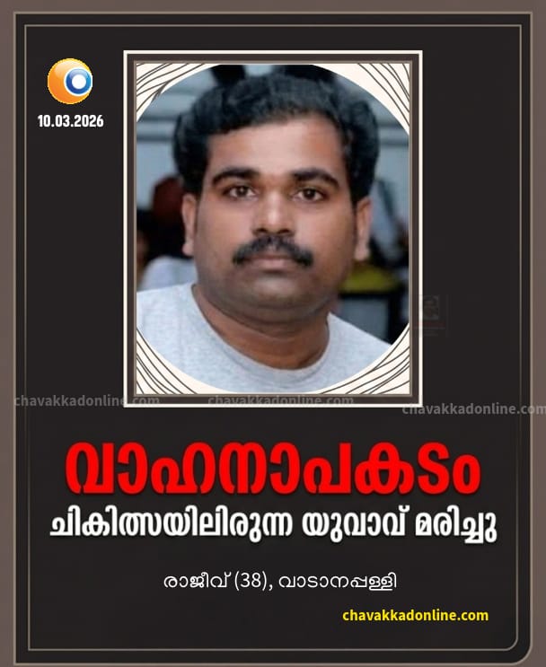 കാഞ്ഞാണി മഞ്ചാടി ഷാപ്പിലെ മാനേജരായ രാജീവ് ഷാപ്പ് അടച്ച ശേഷം ബൈക്കിൽ സുഹൃത്തിനെ കാഞ്ഞാണി ബസ് സ്റ്റാൻ്റിൽ കൊണ്ടാക്കിയ ശേഷം വീട്ടിലേക്ക് മടങ്ങുമ്പോഴാണ് എത്തിരെ നിന്ന് വന്നിരുന്ന കാർ ഇടിച്ചത്. ബൈക്കിൽ നിന്ന് റോഡിലേക്ക് തെറിച്ചു വീണ് തലക്കും വയറിനും ഇരുകാലിനും ഗുരുതര പരിക്കേറ്റ രാജീവിനെ അപകടം വരുത്തിയ കാറിലെ യാത്രക്കാർ ആംബുലൻസിൽ തൃശൂർ എലൈറ്റ് ആശുപത്രിയിൽ എത്തിച്ചെങ്കിലും ഇന്ന് പുലർച്ചെ 3.50 ഓടെ മരിക്കുകയായിരുന്നു. അന്തിക്കാട് പൊലീസ് കേസെടുത്തു. അമ്മ : യശോദ. ഭാര്യ : ആതിര. മകൻ : ആരവ് ( എൽ.കെ.ജി). സഹോദരങ്ങൾ: രതീഷ് (ബൈക്ക് മെക്കാനിക്ക് തൃത്തല്ലൂർ ) സലീഷ്(ഡ്രൈവർ) രാഹുൽ (ദുബൈ ).