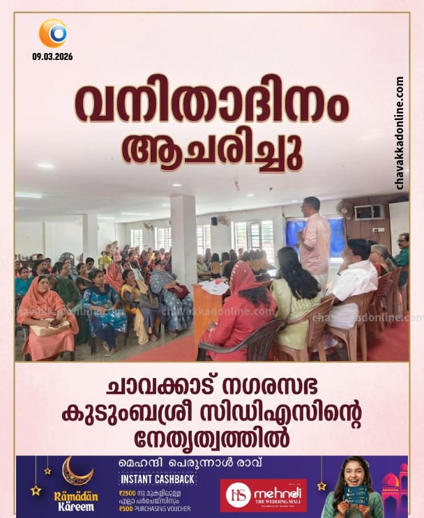 ചാവക്കാട് നഗരസഭ കുടുംബശ്രീ സിഡിഎസിന്റെ നേതൃത്വത്തിൽ അന്താരാഷ്ട്ര വനിതാദിനം ആചരിച്ചു
