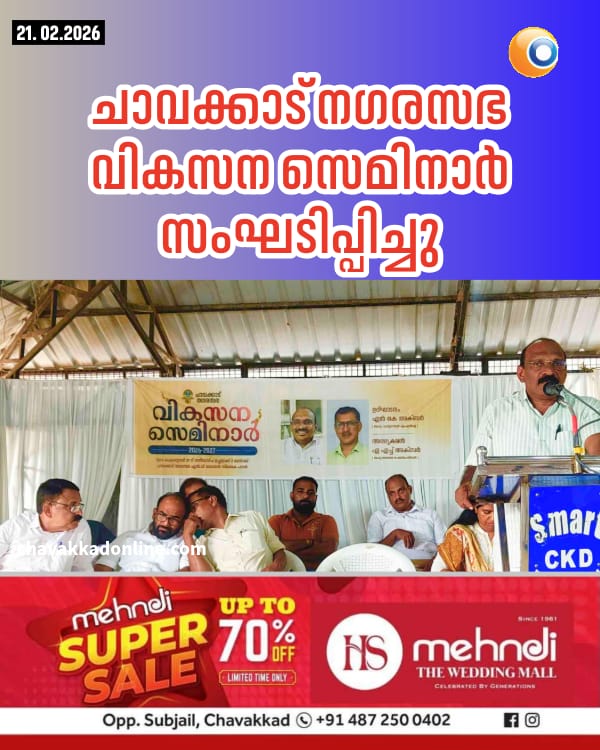 ചാവക്കാട്: ചാവക്കാട് നഗരസഭയുടെ സമഗ്ര വികസനം ലക്ഷ്യമിട്ടുള്ള വികസന സെമിനാർ സംഘടിപ്പിച്ചു. ഗുരുവായൂർ എം എൽ എ എൻ കെ അക്ബർ ഉദ്ഘാടനം ചെയ്തു. നഗരസഭ ചെയർപേഴ്സൺ എ എച്ച് അക്ബർ ചടങ്ങിൽ അദ്ധ്യക്ഷത വഹിച്ചു. വൈസ് ചെയർപേഴ്സൺ ബിൻസി സന്തോഷ് സ്വാഗതം ആശംസിച്ചു.
