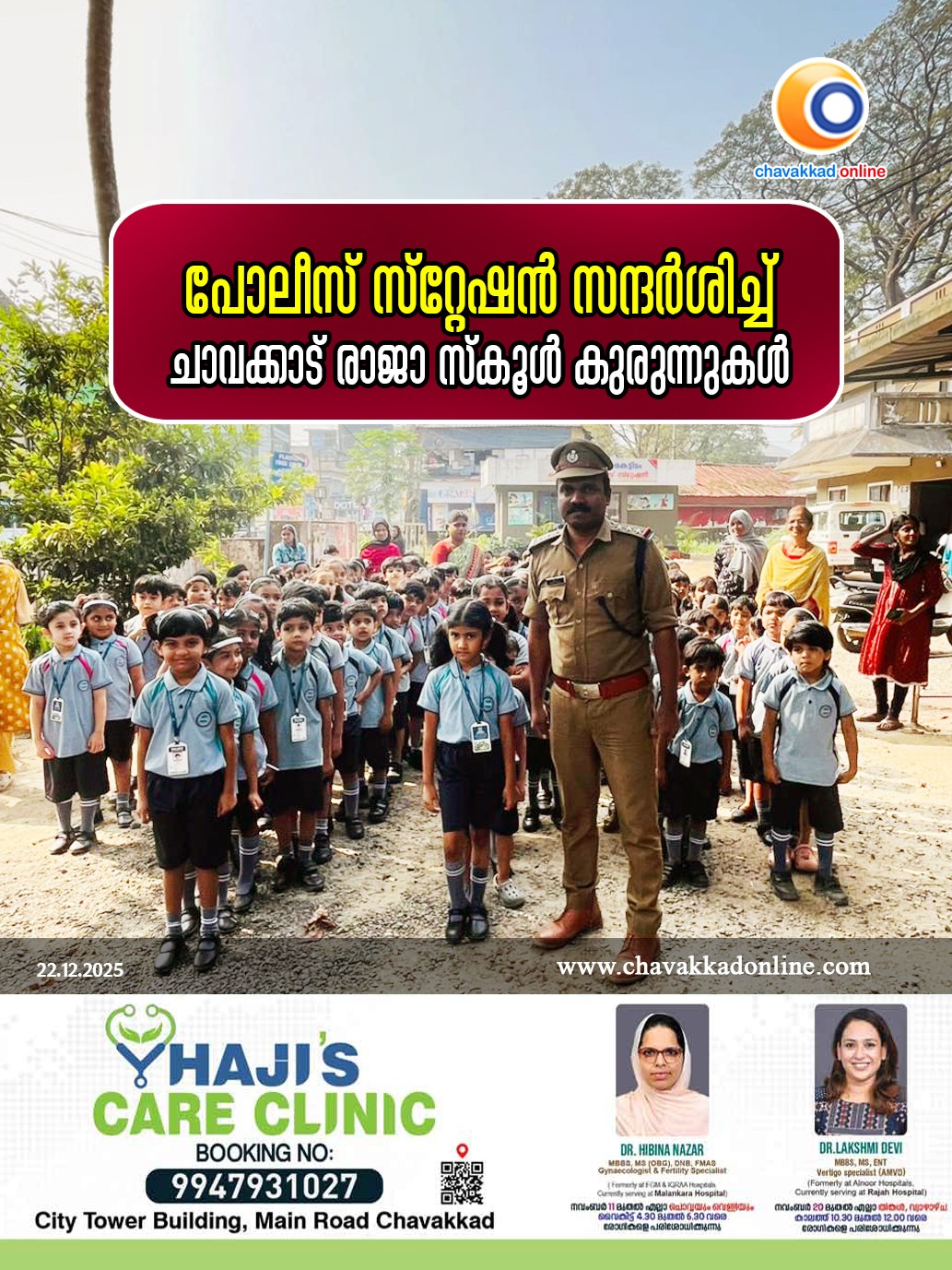 പോലീസ് സ്റ്റേഷന് സന്ദര്ശിച്ച് ചാവക്കാട് രാജാ സ്കൂൾ കുരുന്നുകള്