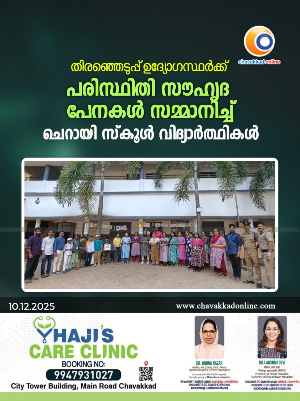 പരിസ്ഥിതി സൗഹൃദ പേനകൾ നൽകി തിരഞ്ഞെടുപ്പ് ഉദ്യോഗസ്ഥരെ സ്വീകരിച്ച് ചെറായി സ്കൂൾ വിദ്യാർത്ഥികൾ