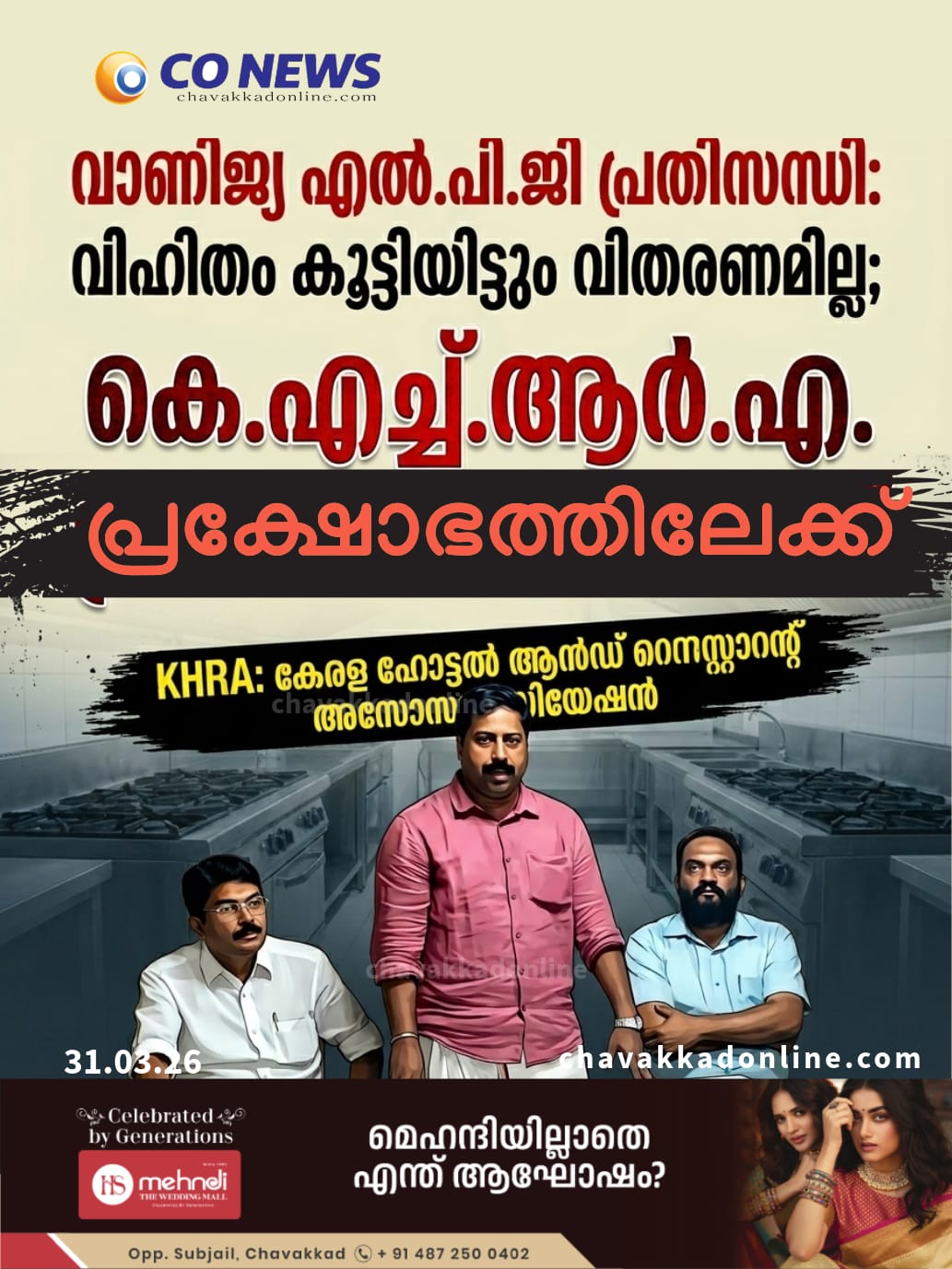 വാണിജ്യ എൽ.പി.ജി പ്രതിസന്ധി: വിഹിതം കൂട്ടിയിട്ടും വിതരണമില്ല; കെ.എച്ച്.ആർ.എ. പ്രക്ഷോഭത്തിലേക്ക്