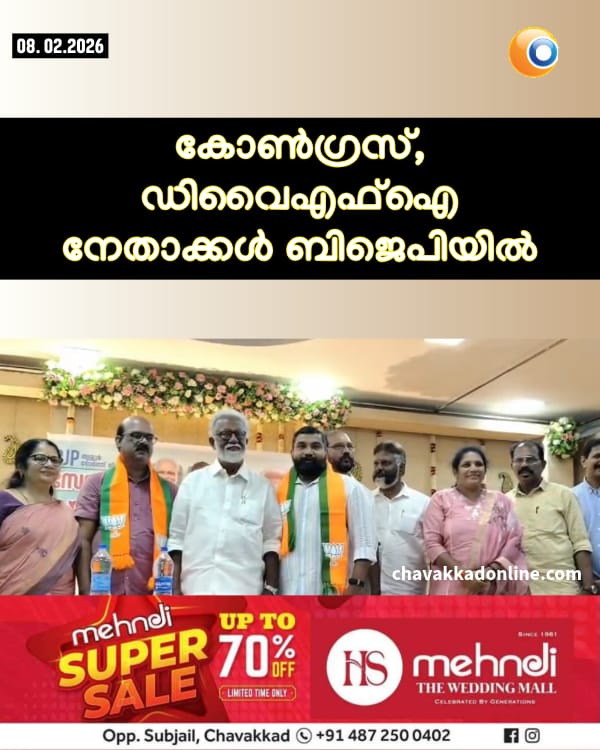 കോൺഗ്രസ്, ഡിവൈഎഫ്ഐ നേതാക്കൾ ബിജെപിയിൽ