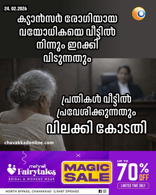 ക്യാൻസർ രോഗിയായ വയോധികയെ വീട്ടിൽ നിന്നും ഇറക്കി വിടുന്നതും പ്രതികൾ വീട്ടിൽ പ്രവേശിക്കുന്നതും വിലക്കി കോടതി