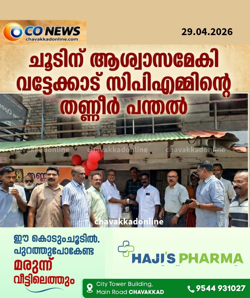 ചാവക്കാട്: കഠിനമായ വേനൽച്ചൂടിൽ പൊതുജനങ്ങൾക്ക് ആശ്വാസമേകാൻ സിപിഎം സംസ്ഥാന നേതൃത്വത്തിന്റെ ആഹ്വാനപ്രകാരം വട്ടേക്കാട് ബ്രാഞ്ച് കമ്മിറ്റിയുടെ നേതൃത്വത്തിൽ തണ്ണീർ പന്തൽ ഒരുക്കി. എൽ.സി സെക്രട്ടറി ലത്തീഫ്, വട്ടേക്കാട് ജുമാത്ത് കമ്മിറ്റി പ്രസിഡന്റ് ആർ.കെ ജമാലിന് സംഭാരം നൽകിക്കൊണ്ട് ഉദ്ഘാടനം നിർവഹിച്ചു. വട്ടേക്കാട് ബ്രാഞ്ച് സെക്രട്ടറി അറക്കൽ ഹംസ സ്വാഗതം ആശംസിച്ചു.കടപ്പുറം എൽ.സി പ്രതിനിധികളായ മെഹ്റൂഫ്, മുസ്തഫ എന്നിവർ ചടങ്ങിൽ സംബന്ധിച്ചു. വിവിധ രാഷ്ട്രീയ-സാമൂഹിക രംഗത്തെ പ്രമുഖരും നാട്ടുകാരും പങ്കെടുത്തു. ചുട്ടുപൊള്ളുന്ന വേനലിൽ യാത്രക്കാർക്കും പൊതുജനങ്ങൾക്കും ഉപകാരപ്രദമാകുന്ന രീതിയിലാണ് തണ്ണീർ പന്തൽ ഒരുക്കിയിട്ടുള്ളത്.