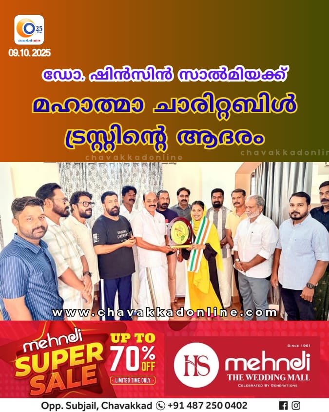 ഡോ ഷിൻസിൻ സാൽമിയക്ക് മഹാത്മാ ചാരിറ്റബിൾ ട്രസ്റ്റിന്റെ ആദരം