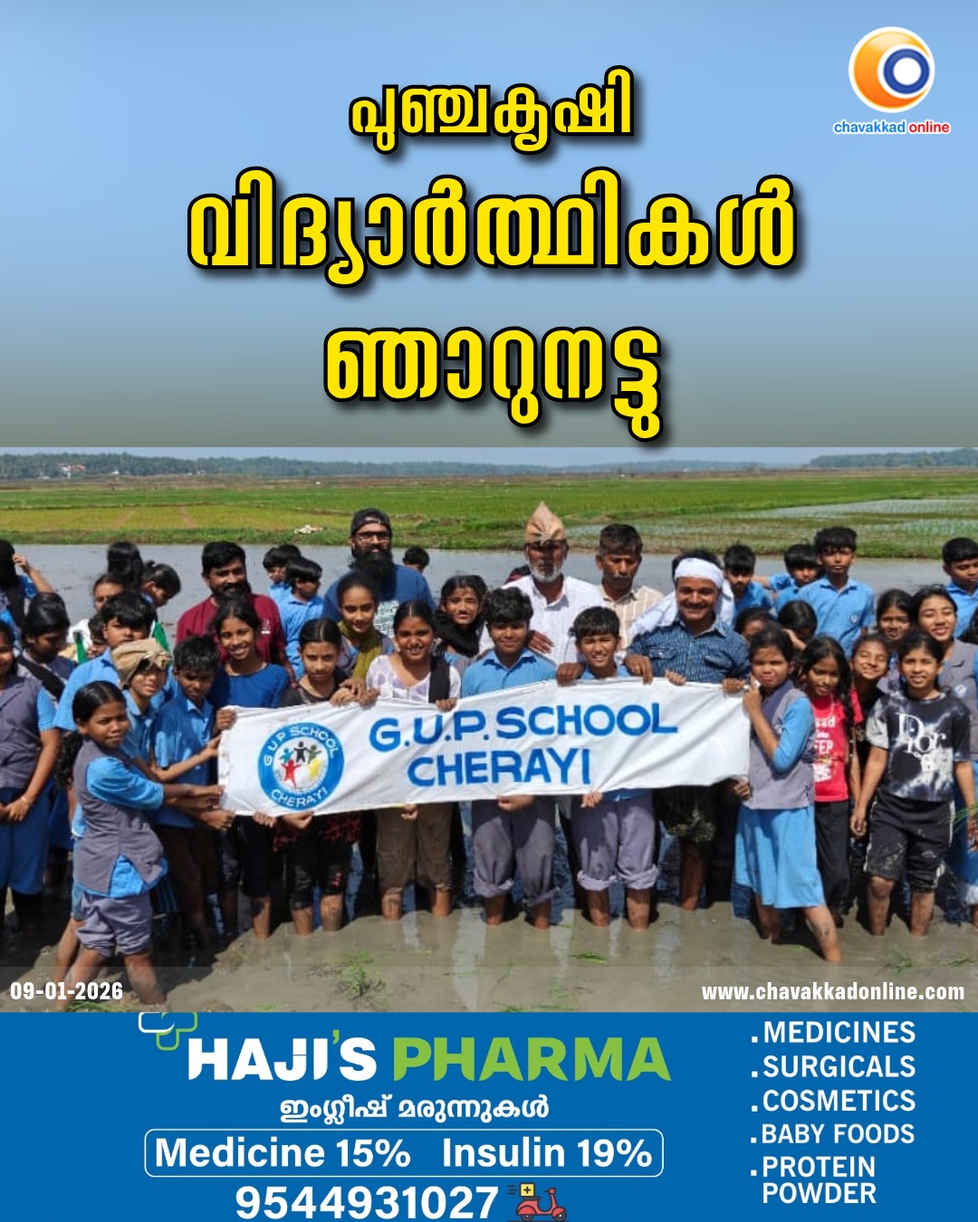 പുന്നയൂർക്കുളം : നെൽക്കൃഷിയുടെ വിവിധ ഘട്ടങ്ങൾ പ്രായോഗികമായി പഠിക്കുന്നതിനും നെൽപ്പാടത്തെ ജൈവ വൈവിധ്യം മനസ്സിലാക്കുന്നതിനുമായി കർഷകരോടൊപ്പം പാടത്തേയ്ക്കിറങ്ങി ഇക്കോ ക്ലബ്ബ് വിദ്യാർത്ഥികളും അധ്യാപകരും. സ്കൂൾ എസ്.എം.സി. ചെയർമാനായ കളത്തിങ്കൽ അജീഷിന്റെ 5 ഏക്കർ കൃഷിയിടത്തിലെ ഒരു ഏക്കറിലാണ് പൗർണമി ഇനത്തിൽപ്പെട്ട നെൽ വിത്ത് വിതച്ചത്. മുളച്ച ഞാറുകൾ വിദ്യാർത്ഥികൾ പറിച്ചെടുത്ത് മൂന്നെണ്ണം വീതമുള്ള നെൽച്ചെടികളാക്കി കഴുകിയെടുത്ത് മണ്ണൊരുക്കിയ ചേറു നിറഞ്ഞ പാടത്ത് വരിവരിയായി നിശ്ചിത അകലത്തിൽ നട്ടു. അറുപത് കുട്ടികളും പ്രധാനധ്യാപകൻ ഉൾപ്പെടെയുള്ള 6 അധ്യാപകരും പി.ടി.എ, എസ്.എം.സി, എസ്.എസ്.ജി, എക്സിക്യുട്ടീവ് അംഗങ്ങൾ ഉൾപ്പെടെയുള്ളവർ ഞാറു നടീലിന് നേതൃത്വം നൽകി.