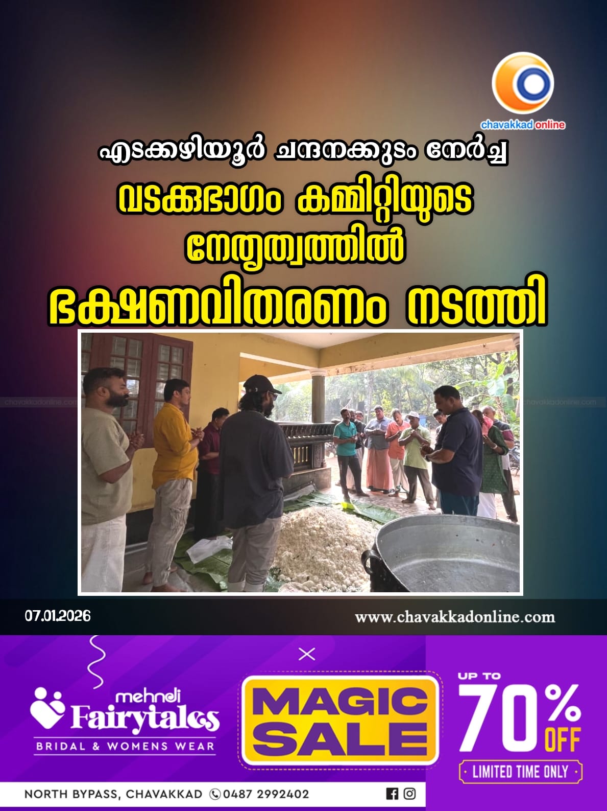 എടക്കഴിയൂർ ചന്ദനക്കുടം നേർച്ച: വടക്കുഭാഗം കമ്മിറ്റിയുടെ നേതൃത്വത്തിൽ ഭക്ഷണവിതരണം നടത്തി