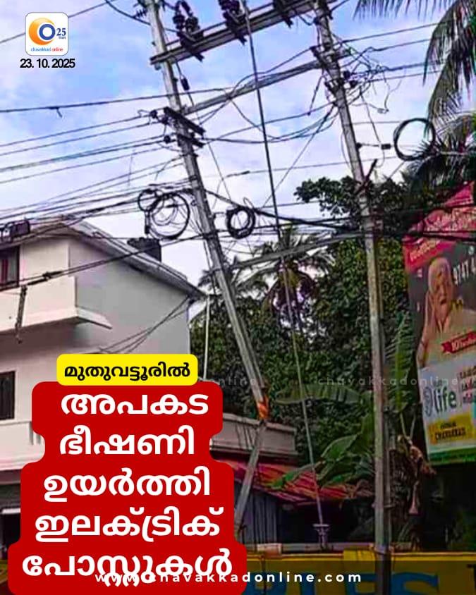 മുതുവട്ടൂരിൽ അപകടഭീഷണി ഉയർത്തി ഇലക്ട്രിക് പോസ്റ്റുകൾ – മാറ്റി സ്ഥാപിക്കാത്തതിൽ പ്രതിഷേധം