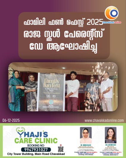 ചാവക്കാട് : രാജ സ്കൂൾ പേരെന്റ്സ് ഡേ ആഘോഷിച്ചു. എ. എം. സുഫീർ ഉദ്ഘാടനം ചെയ്തു. പ്രിൻസിപ്പാൾ ഷമീം ബാവ അധ്യക്ഷത വഹിച്ചു. ഹെഡ്ഗേൾ എൻ കദീജ സ്വാഗതം പറഞ്ഞു. മാനേജർ മധുസൂദനൻ തലപ്പിള്ളി, പിടിഎ പ്രസിഡണ്ട് തുഫൈൽ പൊന്നേത്ത്, നിമ്മി അജയകുമാർ എന്നിവർ ആശംസ നേർന്നു. സ്കൂൾ ഹെഡ് ബോയ് ബിലാൽ അഹമ്മദ് ജീലാനി നന്ദി പറഞ്ഞു. രക്ഷിതാക്കൾക്കായി കേക്ക് മേക്കിങ്, മെഹന്തി കോമ്പിറ്റേഷൻ, സാലഡ് മേക്കിങ്, ക്രാഫ്റ്റ്, പോട്ട് പെയിന്റിംഗ്, ഫാമിലി ഫോട്ടോ എക്സിബിഷൻ, പെൻസിൽ ഡ്രോവിങ്, ഓയിൽ പെയിന്റിംഗ്, വാട്ടർ കളർ, ഫാബ്രിക് പെയിന്റിങ്, വീട് അലങ്കാരങ്ങൾ, സോഫ്റ്റ് ടോയ്സ്, ജ്വല്ലറി മേക്കിങ് എന്നിവയിൽ മത്സരം സംഘടിപ്പിച്ചു. കലാകായിക മത്സരങ്ങളും നടന്നു.