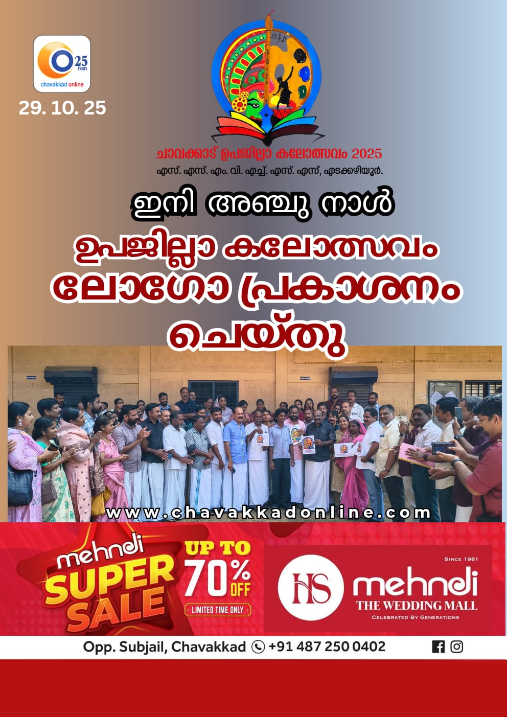 എടക്കഴിയൂർ : ചാവക്കാട് ഉപജില്ലാ കലോത്സവത്തിന് ഇനി അഞ്ചു നാൾ മാത്രം. എടക്കഴിയൂർ സീതി സാഹിബ് സ്കൂളിൽ നവംബർ 4 ന് കലോത്സവത്തിന് തുടക്കമാകും. ചാവക്കാട് ഉപജില്ലാ കലോത്സവം 2025 ലോഗോ എൻ കെ അക്ബർ എം എൽ എ പ്രകാശനം ചെയ്തു. എടക്കഴിയൂർ സീതി സാഹിബ് സ്കൂളിൽ നടന്ന ചടങ്ങിൽ പഞ്ചായത്ത് പ്രസിഡന്റ് ടി വി സുരേന്ദ്രൻ അധ്യക്ഷത വഹിച്ചു.