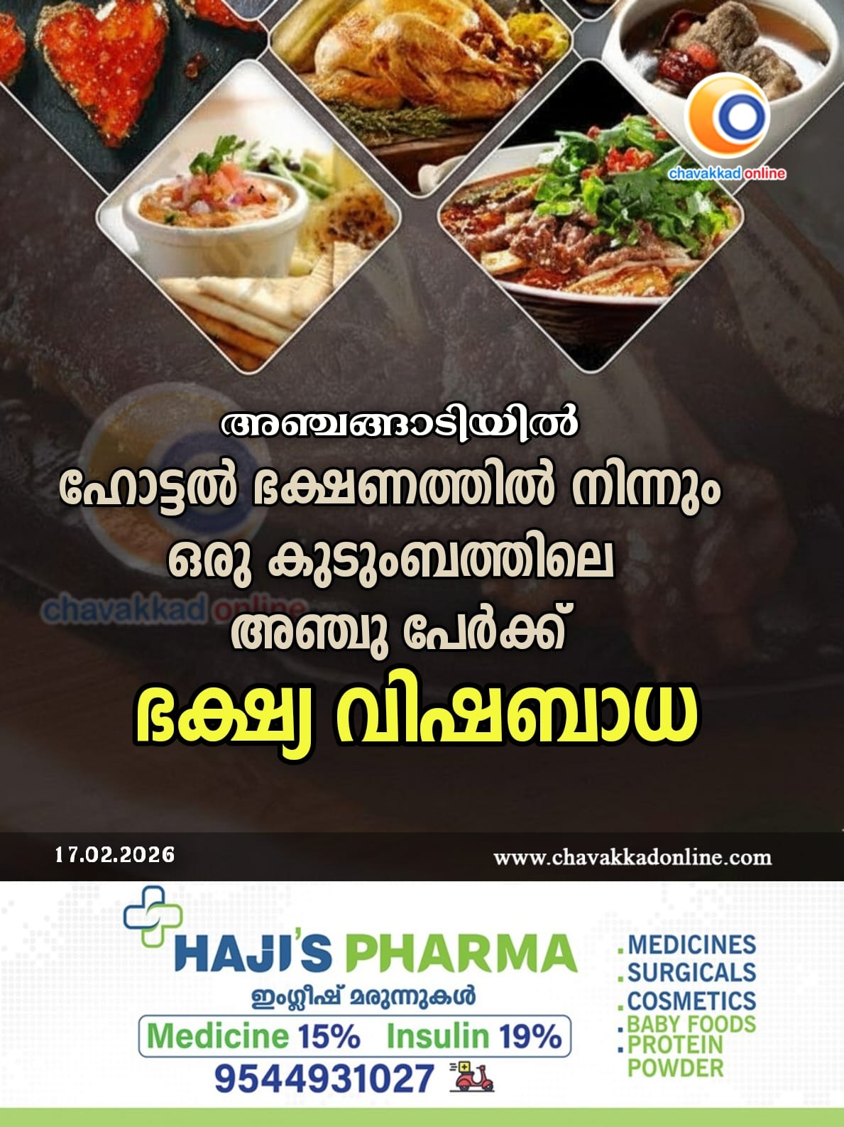 ഹോട്ടൽ ഭക്ഷണത്തിൽ നിന്നും കുടുംബത്തിലെ അഞ്ചു പേർക്ക് ഭക്ഷ്യ വിഷബാധ