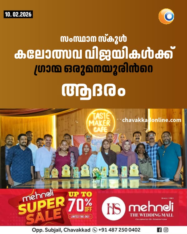 ഒരുമനയൂർ: 2025 – 26 സംസ്ഥാന സ്കൂൾ കലോത്സവത്തിൽ വിവിധ ഇനങ്ങളിൽ വിജയികളായ വിദ്യാർത്ഥികളെ ഗ്രാന്മ ഒരുമനയൂരിന്റെ നേതൃത്വത്തിൽ ഉപഹാരങ്ങൾ നൽകി ആദരിച്ചു. ഒരുമനയൂർ ടേസ്റ്റ് മേക്കർ കോൺഫറൻസ് ഹാളിൽ നടന്ന ചടങ്ങിൽ ഗുരുവായൂർ എംഎൽഎ എൻ. കെ. അക്ബർ അവാർഡ് ദാന ചടങ്ങ് ഉദ്ഘാടനം ചെയ്തു. ഗ്രാന്മ രക്ഷാധികാരി പി എം അബ്ദുൽ നാസർ അധ്യക്ഷത വഹിച്ചു.
