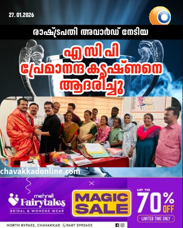 ഗുരുവായൂർ : രാഷ്ട്രപതി അവാർഡ് നേടിയ ഗുരുവായൂർ എ സി പി പ്രേമാനന്ദകൃഷ്ണനെ ഗുരുവായൂർ നഗരസഭ യുഡിഎഫ് പാർലിമെന്ററി കമ്മിറ്റിയുടെ നേതൃത്വത്തിൽ ആദരിച്ചു. പാർട്ടി ലീഡർ ബഷീർ പൂക്കോടിന്റെ നേതൃത്വത്തിൽ കൗൺസിലർമാരായ ജോയ് ചെറിയാൻ, ജലീൽ പണിക്കവീട്ടിൽ, എ എം മെഹ്റൂഫ്, വി എസ്ന വനീത്, എം വി ബിജു, വി എസ്അ ഷ്ഫാക്ക്, എ വി ഉണ്ണികൃഷ്ണൻ, പ്രിയ രാജേന്ദ്രൻ, സുഷ ബാബു, ബിന്ദു നാരായണൻ, ഷീന റാഫേൽ, ചന്ദ്ര രാമകൃഷ്ണൻ, പി കെ മഹിജ തുടങ്ങിയവർ പങ്കെടുത്തു.