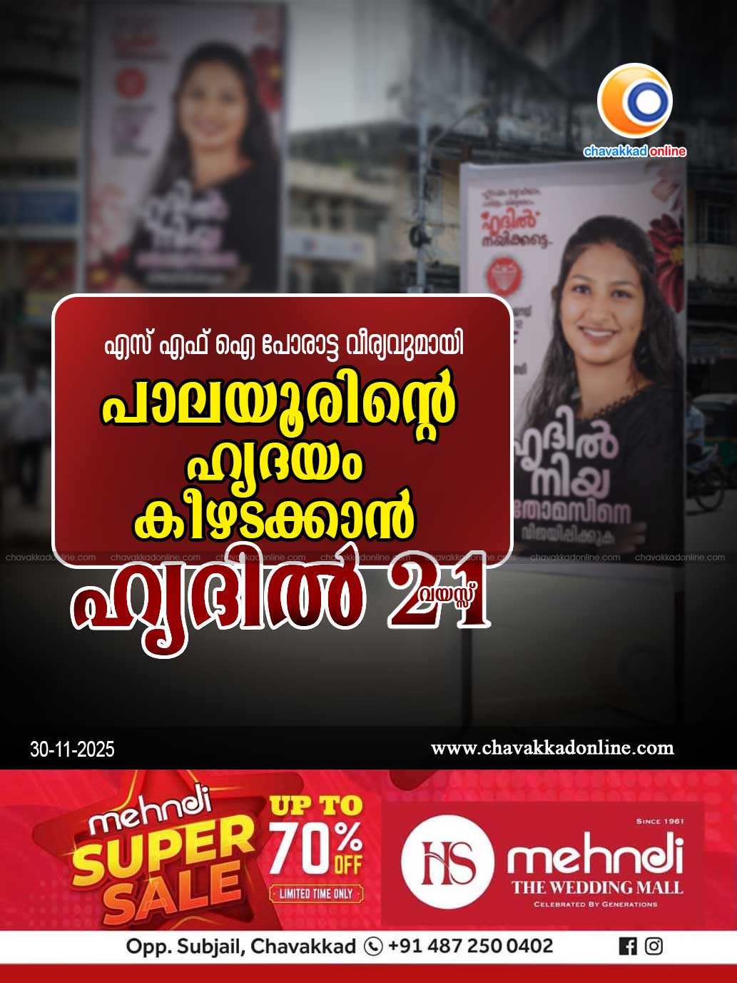 എസ് എഫ് ഐ പോരാട്ട വീര്യവുമായി പാലയൂരിന്റെ ഹൃദയം കീഴടക്കാൻ ഹൃദിൽ വയസ്സ് 21