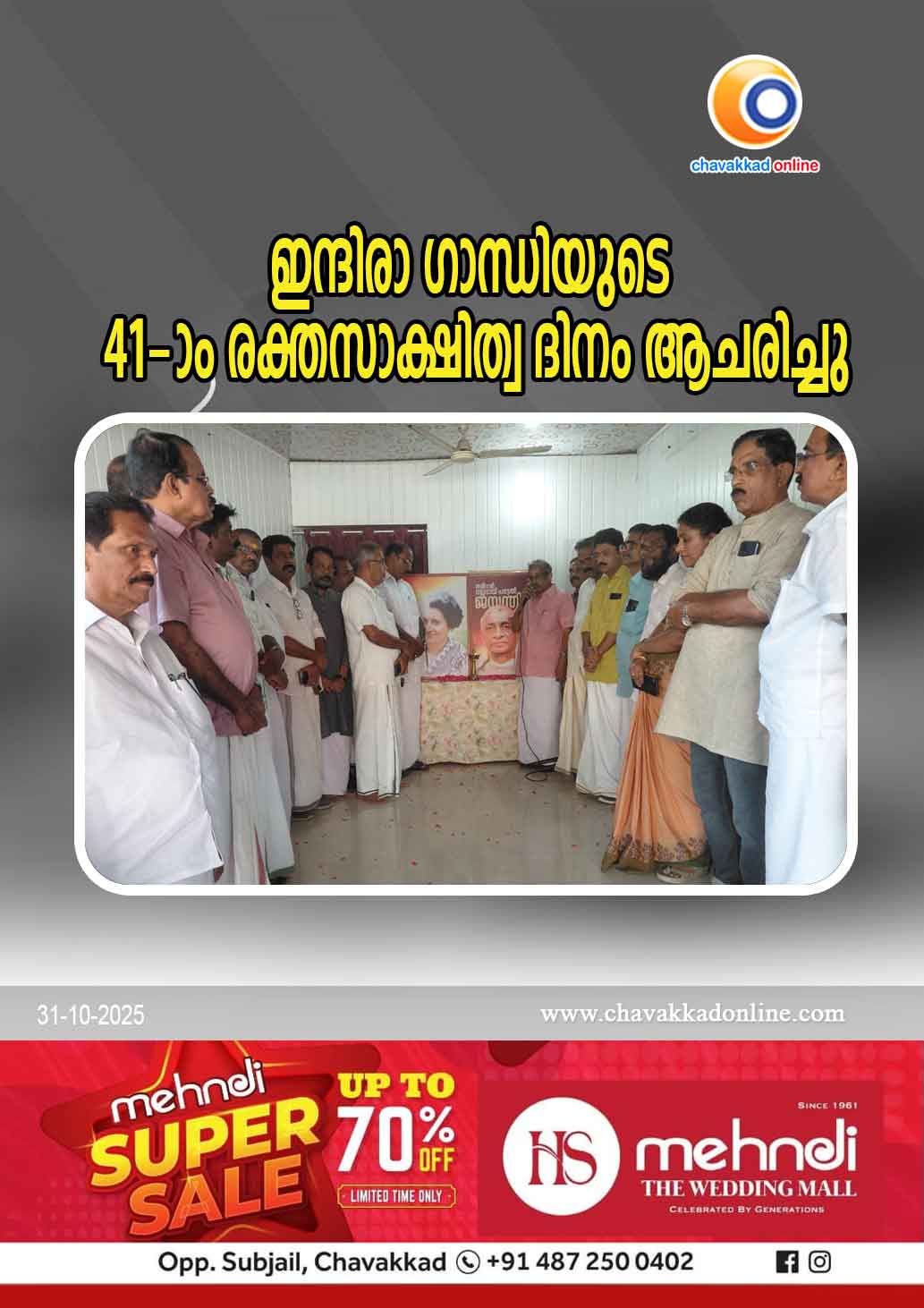 നാടെങ്ങും ഇന്ദിരാഗാന്ധിയുടെ 41-ാം രക്തസാക്ഷിത്വ ദിനം ആചരിച്ചു