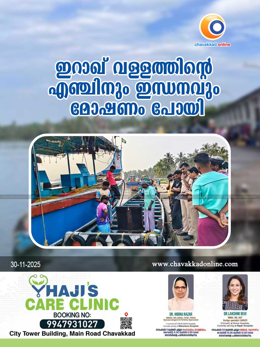 ഇന്ന് പുലർച്ചെ മത്സ്യബന്ധനത്തിന് പോകാൻ എത്തിയപ്പോഴാണ് മോഷണം പോയ വിവരം അറിഞ്ഞത്. ആറ് ലക്ഷം രൂപയുടെ നഷ്ടമാണ് ഉണ്ടായത് എന്ന് വള്ളം ഉടമ താനൂർ ചക്കപ്പന്റെ പുരക്കൽ മുനീർ പറഞ്ഞു. ചാവക്കാട് പോലീസ് സ്ഥലത്ത് എത്തി മേൽ നടപടികൾ സ്വീകരിച്ചു