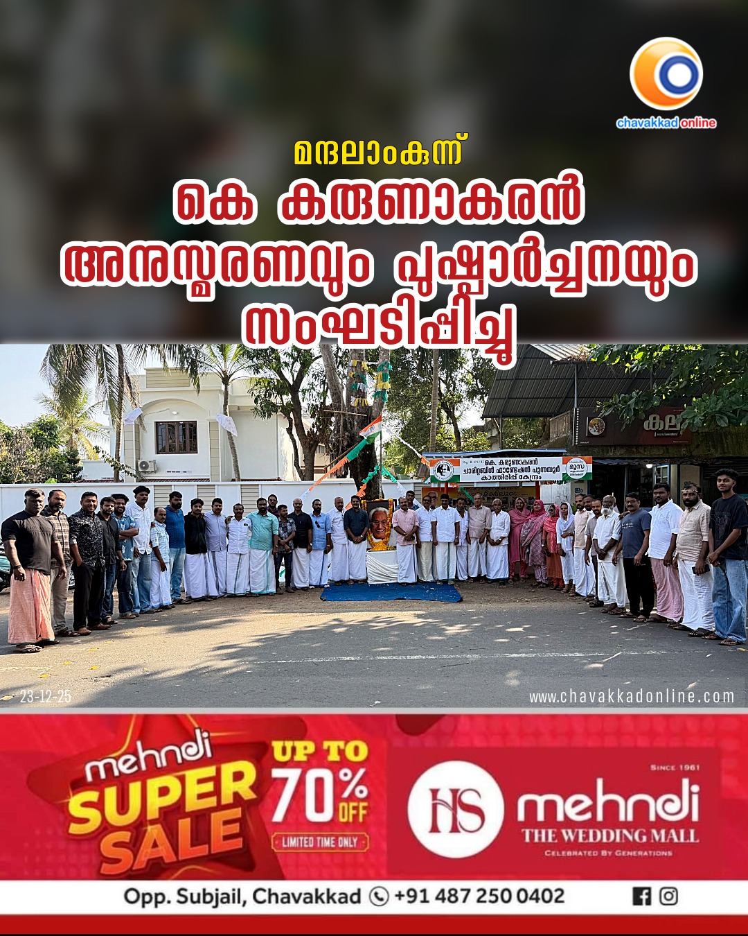 മന്ദലാംകുന്ന്: കെ. കരുണാകരൻ ഫൗണ്ടേഷൻ പുന്നയൂരിന്റെ നേതൃത്വത്തിൽ ലീഡറുടെ 15-ാമത് ചരമദിനാചരണം സംഘടിപ്പിച്ചു.