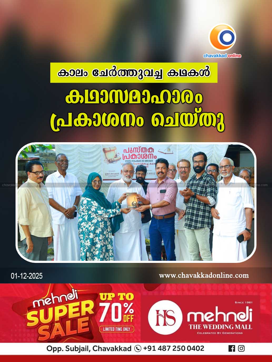 പുന്നയൂർക്കുളം സാഹിത്യസമിതി കൺവീനർ അറക്കൽ ഉമ്മർ അധ്യക്ഷത വഹിച്ചു. നൂറുദ്ദീൻ വാടാനപ്പള്ളി, എം വി ജോസ്, ജലീൽ ചന്ദനത്ത്, ഹക്കീം വെളിയത്ത്, ദിവാകരൻ പനംന്തറ തുടങ്ങിയവർ ആശംസകൾ അർപ്പിച്ച് സംസാരിച്ചു. രചയിതാവ് അലി കണ്ണത്തയിൽ മറുപടി പ്രസംഗം നടത്തി. അലി കണ്ണത്തയലിന്റെ അഞ്ചാമത്തെ കഥാസമാഹാരമാണ് കാലം ചേർത്തുവച്ച കഥകൾ. 62 പേജുകൾ അടങ്ങിയ കഥാസമാഹാരത്തിൽ ജീവിത ചുറ്റുപാടുകളിൽ നിന്നുള്ള കഥകളുടെ നേർചിത്രങ്ങൾ അടങ്ങിയ 18 അധ്യായങ്ങളാണ് ഉള്ളത്. സൗഹൃദയ റസിഡൻസ് അസോസിയേഷനാണ് പബ്ലിക്കേഷൻ നിർവഹിക്കുന്നത്. നാലപ്പാടൻ സാംസ്കാരിക വേദി വൈസ് പ്രസിഡണ്ട് ചോ മുഹമ്മദുണ്ണി സ്വാഗതവും കൂട്ടായ്മ പെയിൻ ആൻഡ് പാലിയേറ്റീവ് ജനറൽ സെക്രട്ടറി ദിവാകരൻ പനന്തറ നന്ദിയും പറഞ്ഞു.