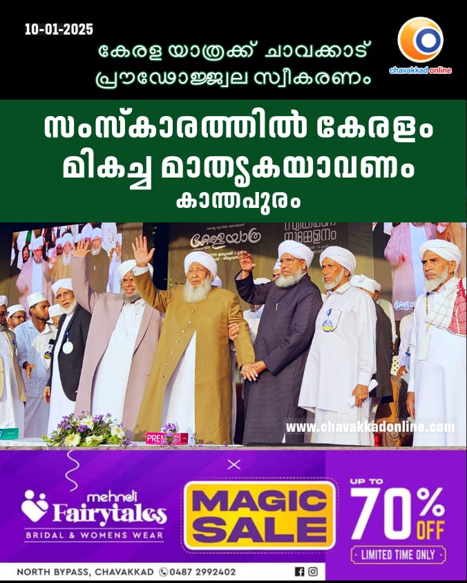 കേരള യാത്രക്ക് ചാവക്കാട് പ്രൗഢോജ്ജ്വല സ്വീകരണം – സംസ്കാരത്തിൽ കേരളം മികച്ച മാതൃകയാവണം: കാന്തപുരം
