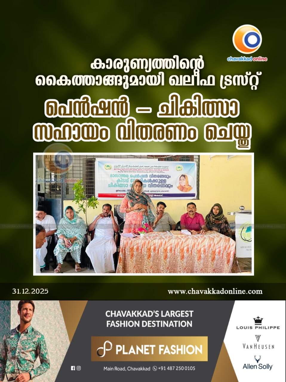 കാരുണ്യത്തിന്റെ കൈത്താങ്ങുമായി ഖലീഫ ട്രസ്റ്റ് : പെൻഷൻ ചികിത്സ സഹായം വിതരണം ചെയ്തു
