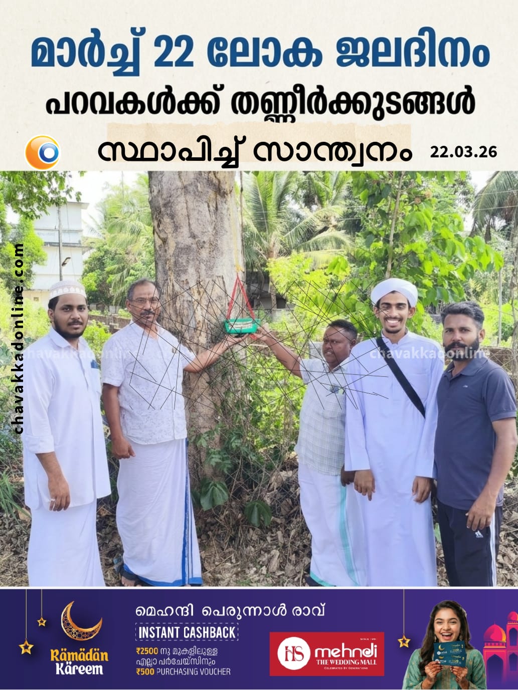 മാർച്ച് 22 ലോക ജലദിനം – പറവകൾക്ക് തണ്ണീർക്കുടങ്ങൾ സ്ഥാപിച്ച് സാന്ത്വനം