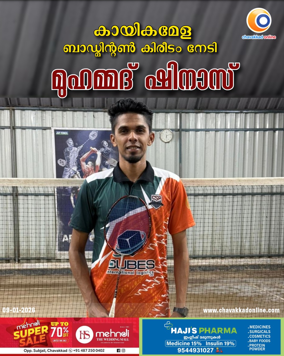 കായിക മേള ബാഡ്മിന്റൺ കിരീടം നേടി മുഹമ്മദ് ഷിനാസ്