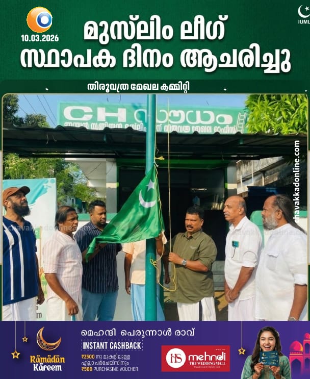 തിരുവത്ര: മുസ്ലിം ലീഗ് സ്ഥാപക ദിനം ആചരിച്ചു. മേഖലാ ഓഫീസിന് മുൻപിൽ ദുബായ് കെ എം സി സി ഗുരുവായൂർ മണ്ഡലം പ്രസിഡന്റ് ടി എം സാദിഖ് തിരുവത്രയും, സ്കൂൾ പരിസരത്ത് നടന്ന ചടങ്ങിൽ കിഴക്കൻ മേഖല പ്രസിഡന്റ് പി പി ഷാഹുവും പതാക ഉയർത്തി. മുനിസിപ്പൽ ജോ. സെക്രട്ടറി അബ്ദുൾ സത്താർ, എം എസ് എഫ് മണ്ഡലം പ്രസിഡന്റ് സബാഹ്, ടി ബി മജീദ്, കുഞ്ഞിമൊയ്ദു, ഖലീൽ, എം എസ് സ്വാലിഹ്, ടി എച് ബക്കർ, ഷിബിലി എന്നിവർ സംബന്ധിച്ചു.