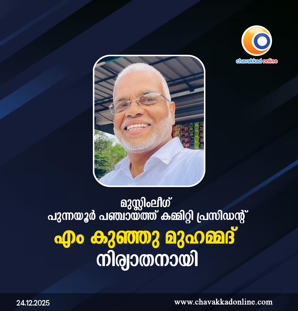 മുസ്ലിംലീഗ് പുന്നയൂർ പഞ്ചായത്ത് കമ്മിറ്റി പ്രസിഡന്റ് എം കുഞ്ഞു മുഹമ്മദ് നിര്യാതനായി