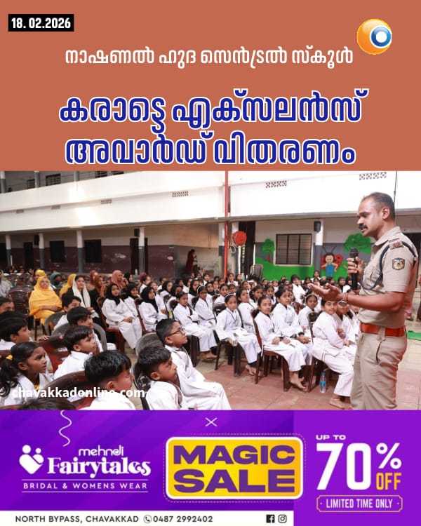 ഒരുമനയൂർ : നാഷണൽ ഹുദ സെൻട്രൽ സ്കൂളിൽ കരാട്ടെ എക്സലൻസ് അവാർഡ് -2026 വിപുലമായി ആഘോഷിച്ചു. സ്കൂൾ മാനേജർ ടി.അബൂബക്കർ അധ്യക്ഷത വഹിച്ചു. ചാവക്കാട് പോലീസ് സബ് ഇൻസ്പെക്ടർ സജിത്ത് ഉദ്ഘാടനം ചെയ്ത്ചെയ്തു. കരാട്ടെയിൽ പ്രഗൽഭരായ വിദ്യാർത്ഥികൾക്ക് ബെൽറ്റ് വിതരണം നടത്തി. സ്കൂൾ ജോയിൻ സെക്രട്ടറി ഫൈസൽ ഉസ്മാൻ, കരാട്ടെ ഇൻസ്ട്രുക്ടർ ജമാലുദ്ദീൻ, വൈസ് പ്രിൻസിപ്പൽ സി. സന്ധ്യ എന്നിവർ സംസാരിച്ചു. സ്കൂൾ പ്രിൻസിപ്പൽ പി.എ ബഷീർ സ്വാഗതവും സി.എസ്.എ കോഡിനേറ്ററായ പി എ റാഷിദ നന്ദിയും പറഞ്ഞു.