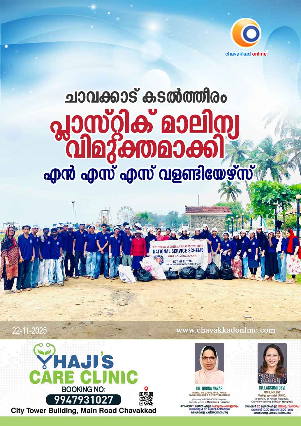 ചാവക്കാട് കടൽത്തീരം പ്ലാസ്റ്റിക് മാലിന്യ വിമുക്തമാക്കി എൻ എസ് എസ് വളണ്ടിയേഴ്സ്