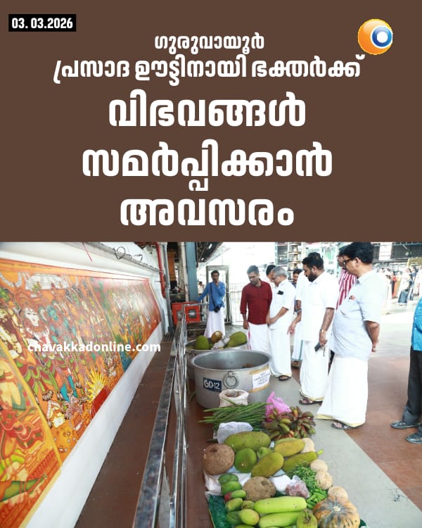 ഗുരുവായൂർ: ഗുരുവായൂർ ക്ഷേത്രോത്സവ പ്രസാദ ഊട്ടിനാവശ്യമായ വിഭവങ്ങൾ സമർപ്പിക്കാൻ ഭക്തർക്ക് അവസരം. ഇടിച്ചക്കയും പച്ചക്കറിയും പല വ്യഞ്ജനങ്ങൾ ഉൾപ്പെടെയുള്ള വിഭവങ്ങൾ ഭഗവാന് സമർപ്പിക്കാം. ഭക്തരുടെ നിരന്തര ആവശ്യത്തെത്തുടർന്നാണ് ദേവസ്വം തീരുമാനം. വിഭവ ശേഖരണത്തിനായി കിഴക്കേ നടയിൽ ക്ഷേത്രം ചുമർചിത്രമതിലിന് സമീപംമൂന്ന് ഉരുളികൾ വെച്ചിട്ടുണ്ട് . ഇതിൽ ഭക്തർക്ക് വിഭവങ്ങൾ സമർപ്പിക്കാം.