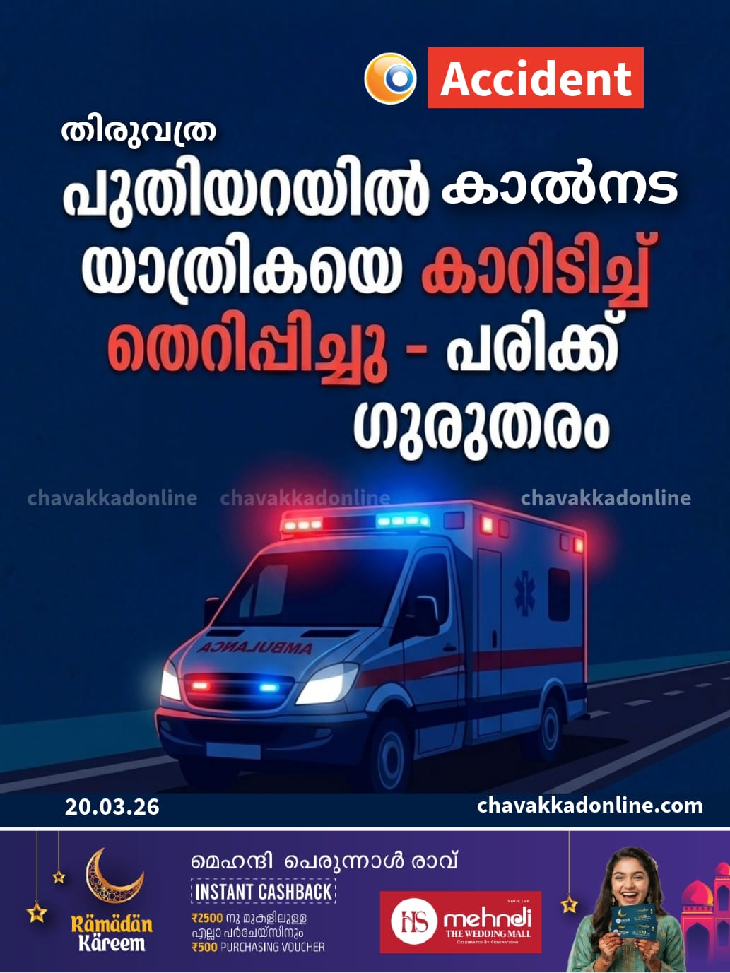പുതിയറയിൽ കാൽനട യാത്രികയെ കാറിടിച്ച് തെറിപ്പിച്ചു പരിക്ക് ഗുരുതരം
