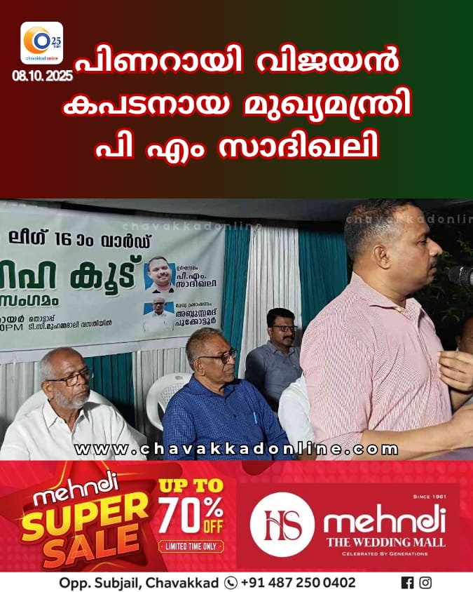 കടപ്പുറം : ഇ എം എസ് മുതൽ കേരളം ഭരിച്ച മുഖ്യമന്ത്രിമാരിൽ ജനങ്ങൾ വെറുക്കുന്ന മുഖ്യമന്ത്രി ആരെന്ന ചോദ്യത്തിന് പിണറായി വിജയൻ എന്നതാണ് ഏക ഉത്തരം എന്ന് മുസ്ലിം ലീഗ് സംസ്ഥാന സെക്രട്ടറി പി എം സാദിഖലി അഭിപ്രായപ്പെട്ടു. ഇത്രമേൽ കപടനായ ഒരു ജനപ്രതിനിധിയെ കേരളം കണ്ടിട്ടില്ല. ആചാരങ്ങൾക്കെതിരെ ഉറഞ്ഞു തുള്ളി വിശ്വാസികൾക്കെതിരായി ശബരിമലയെ കലാപ ഭൂമിയാക്കിയ പിണറായി വിജയൻ അയ്യപ്പ സംഗമം നടത്തിയത് മുസ്ലിങ്ങൾക്കെതിരായ കലാപങ്ങൾക്ക് നേതൃത്വം നൽകുന്ന സംഘ്പരിവാർ മുഖ്യമന്ത്രി യോഗി ആദിത്യ നാഥിനെ ക്ഷണിച്ചും ആശംസ വായിച്ചും കുളിർമയിർ കൊണ്ടാണ്. മുസ്ലിം ലീഗ് കടപ്പുറം പഞ്ചായത്ത് തൊട്ടാപ്പ് വാർഡ് കമ്മിറ്റി സംഘടിപ്പിച്ച സ്നേഹ കൂട് കുടുംബ സംഗമം ഉദ്ഘാടനം ചെയ്ത് സംസാരിക്കുകയായിരുന്നു അദ്ദേഹം.
